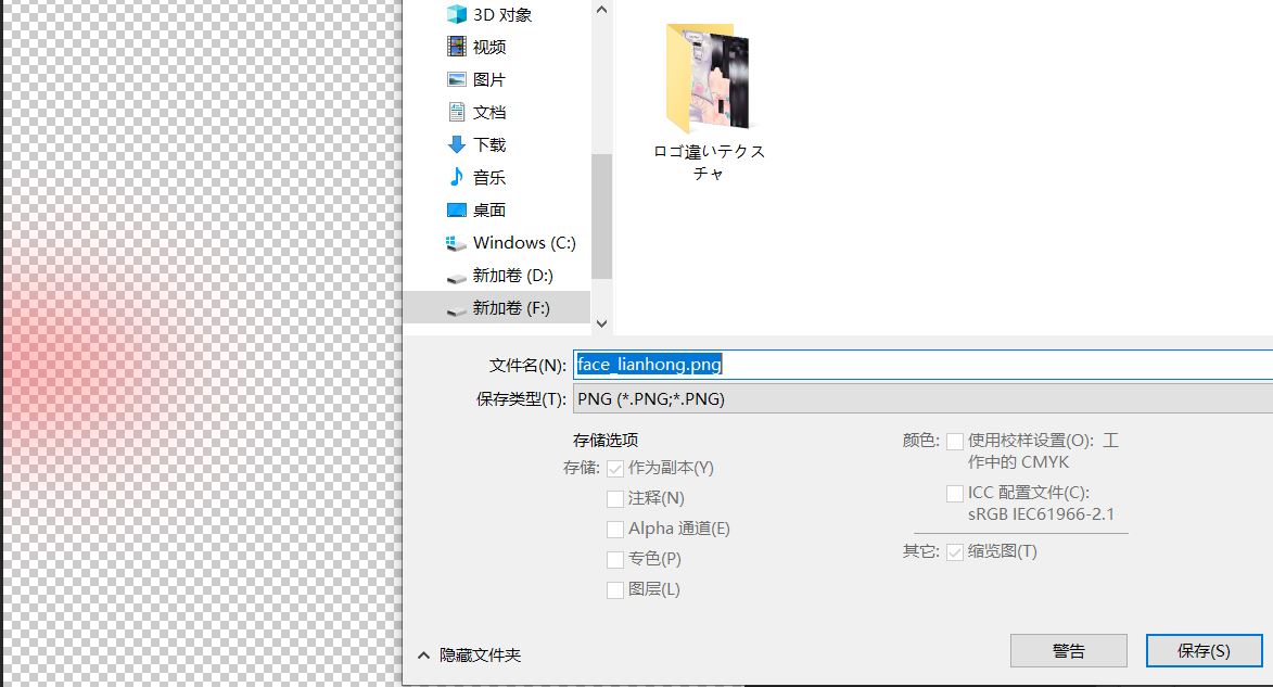 用绘图软件打开这个贴图(比如用PS)画上脸红