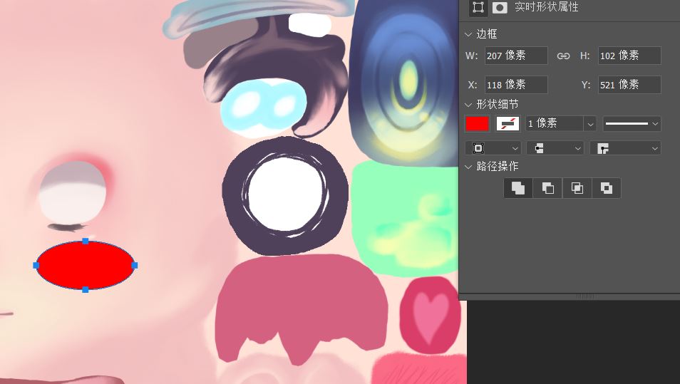 如果要做连成片的鼻子也通红的那种,就画一个很长的扁椭圆,模糊后把椭圆移到脸中间