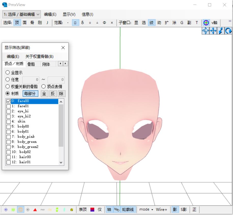 一般模型的脸材质基本都命名为「face」或是「顔」这样的,有些不写名字的就只能一个个找了