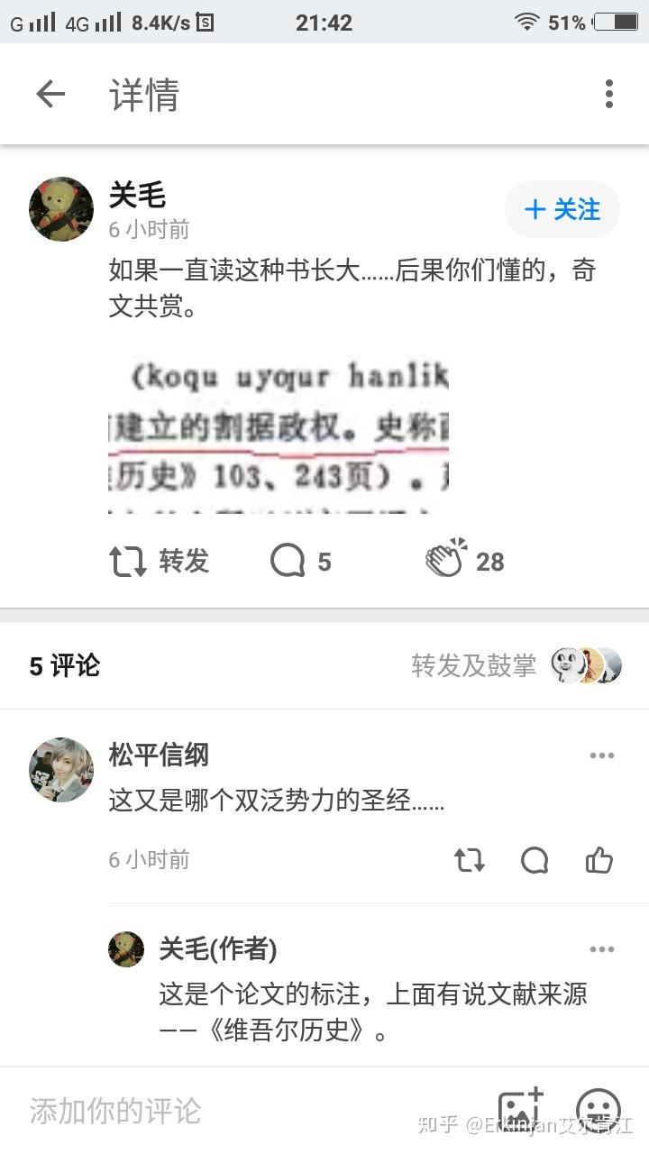 昨天关大神局部截图某论文发了个想法,从截图内容看作者明显混淆了高昌回鹘汗国和吐鲁番汗国,出处列出一本叫《维吾尔族历史》书籍。关大神以此想表达我等看的书籍有问题,嘲笑我们水平不够,突显自己的高格水平。然后好几个人跟着声讨这位汉族人译者“泛突厥”。
