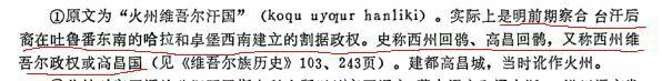 这个注释在维吾尔语原文是没有的,是译者为了说明加上的,其实这一点从注释中也能看出来,第二句的开头“实际上”。弄混高昌回鹘汗国和吐鲁番汗国的不是维吾尔族原文作者是汉族翻译的人。原文作者并没有混淆任何历史内容。原文: 关于察合台语及其形成过程 - 中国知网