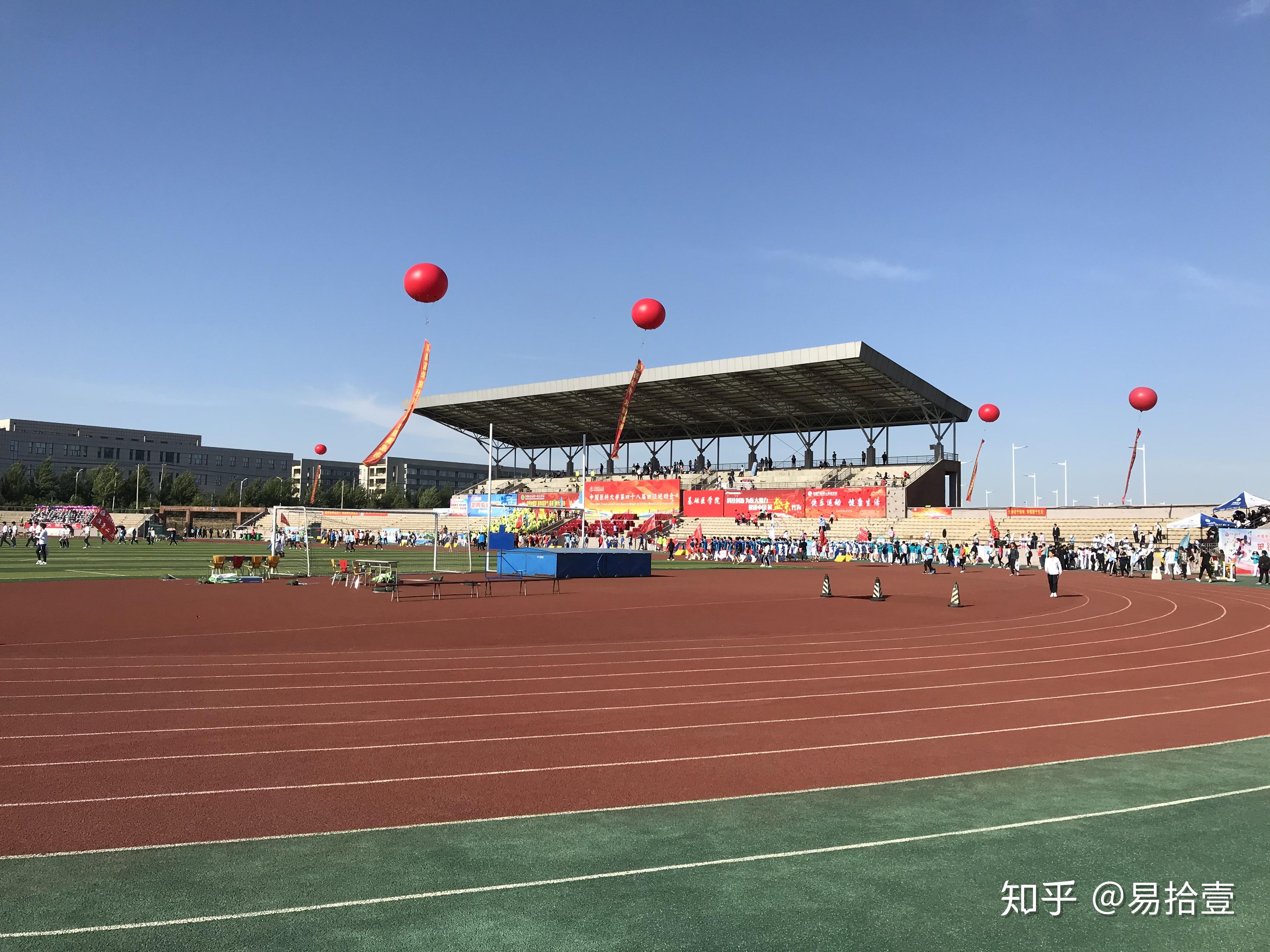 体育场,晚上蛮多人跑步锻炼的,新生军训也会在这里。医大的军训其实比较水的,教官都会让你背着光站,不过防晒还是要涂够呀!不然十一回去就是小黑球了。