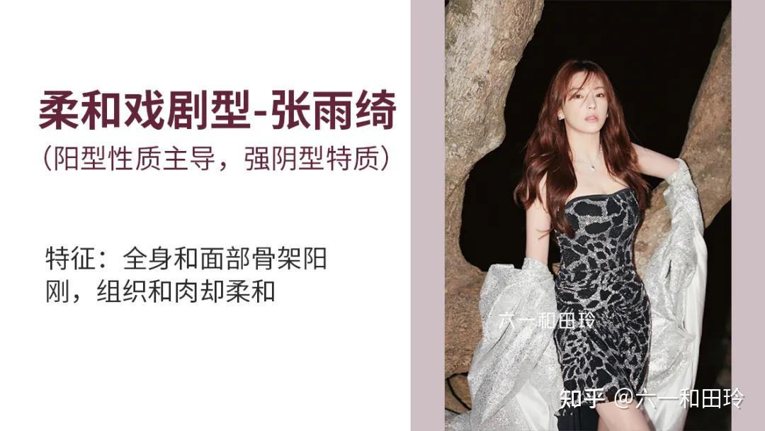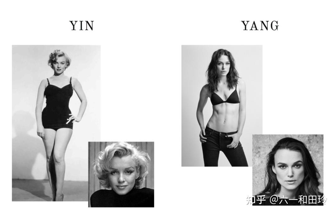 所以他有一套 Kibbe Body Types 理论考量的标准,根据我们的 骨架结构、皮肉特征、肌肉分布、面部特征 等,把女性身体的整体风格从“阴”到“阳”分为13个类型 (可以理解为柔美特征含量与阳刚特征含量)。