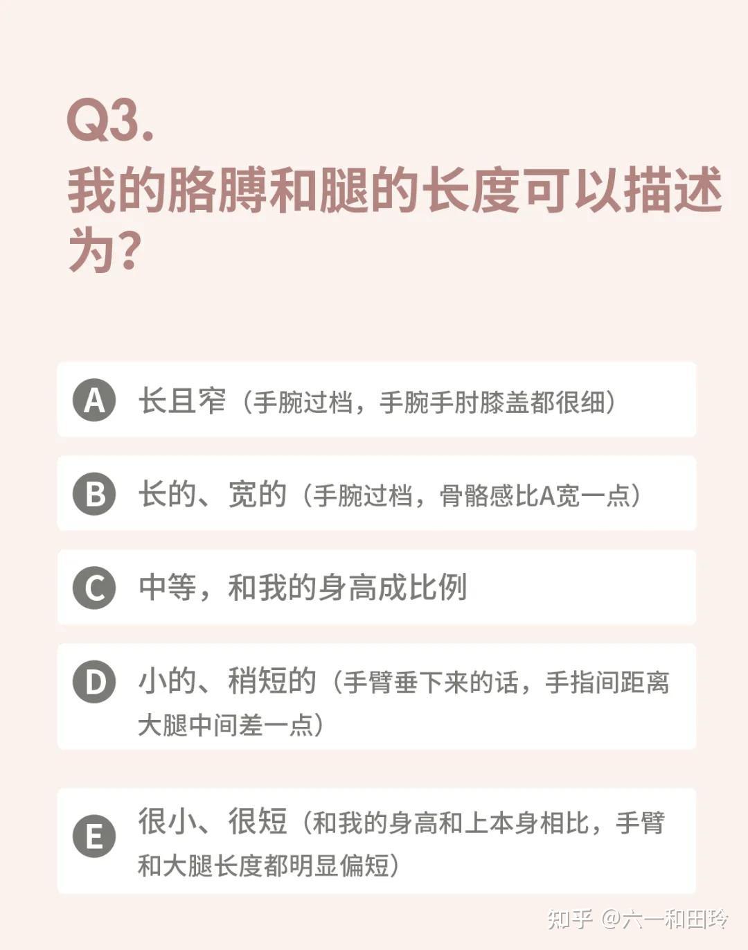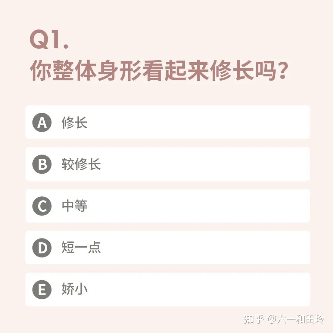 这一题不是问我们的身高有多高哦,而是视觉上看起来修不修长,很大程度取决于 我们的头相对于身体有多大 ,头相对身体比例越大,那么选项越靠后。
