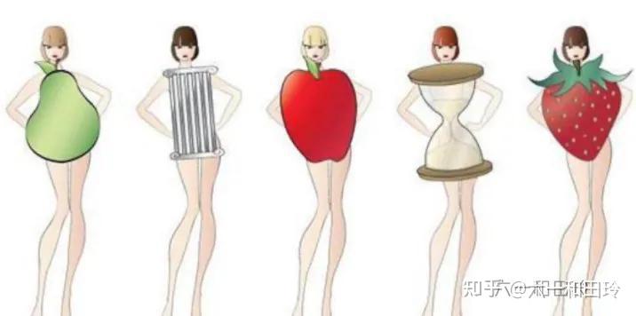 传统的身材分类法 强调对称 ,根据上下半身的相对体积把我们的身材分成 梨形、苹果型、沙漏型、直板型 等,在搭配时强调修饰过大/过小的部分, 过于笼统也不够精确 。