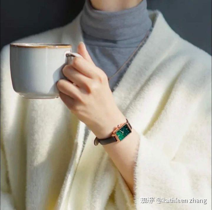 戴上它,抬手投足间分分钟别人会被吸引,与众不同的绿色小方表盘,黑色的皮带,搭配起来颜色很亮丽,正好在手腕的正中间,每次看到那抹绿色都觉得好清新,既优雅又复古。