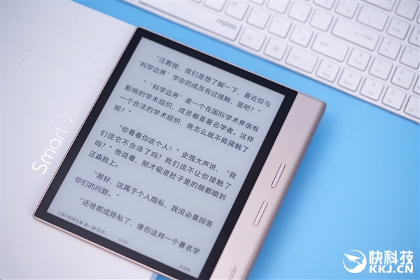外观上,机身最薄处仅4.3毫米,背壳表面使用了磨砂材质,不易沾染指纹和污渍;右侧面板做了加宽,便于手持阅读。