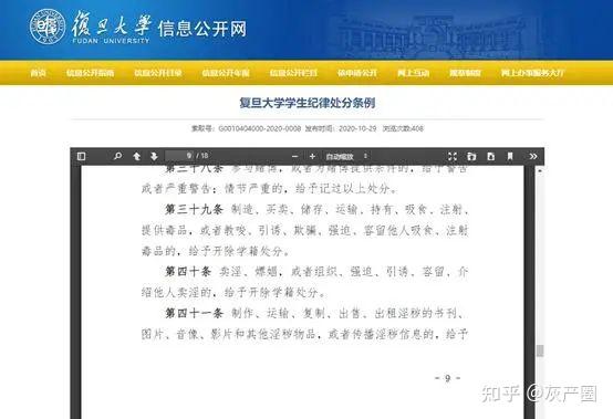 复旦大学信息公开网于2020年10月29日发布的《复旦大学学生纪律处分条例》第四十条显示,卖淫、嫖娼,或者组织、强迫、引诱、容留、介绍他人卖淫的,给予开除学籍处分。