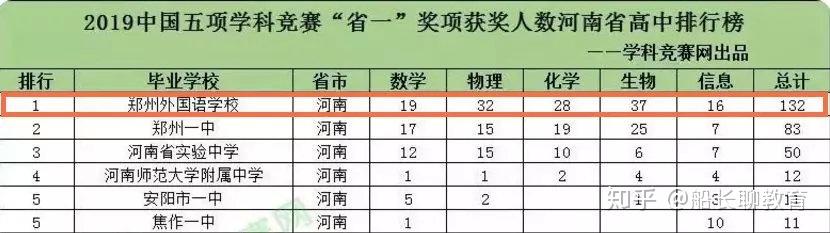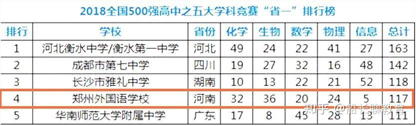 十年磨一剑,2018年全国500强高中五大学科竞赛“省一”排行榜中,郑外排名第四。