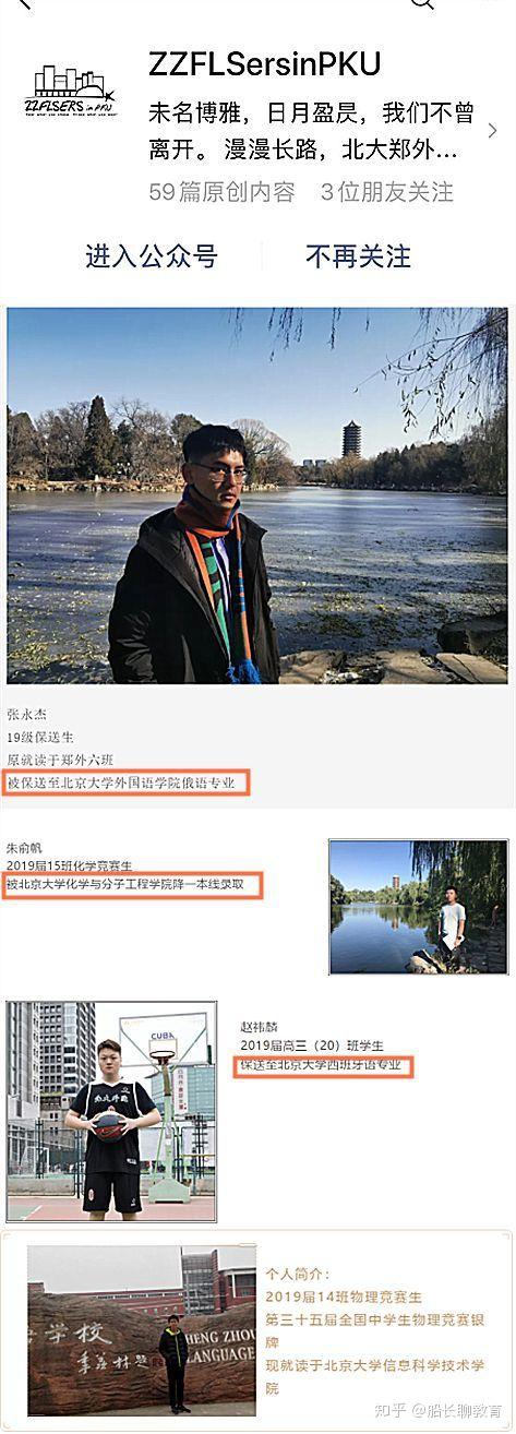 这里给父母们推荐一个公众号:这是由郑外就读北大的保送生们建立的平台,分享他们保送故事,父母们也可以从另一面了解他们的生活经历。