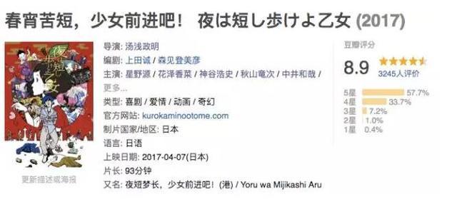 [春宵苦短,少女前进吧]豆瓣评分8.9