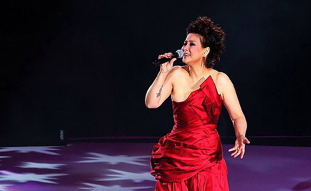 注:甄妮演唱会照片,铁血丹心是射雕英雄传的主题曲,更是其代表作
