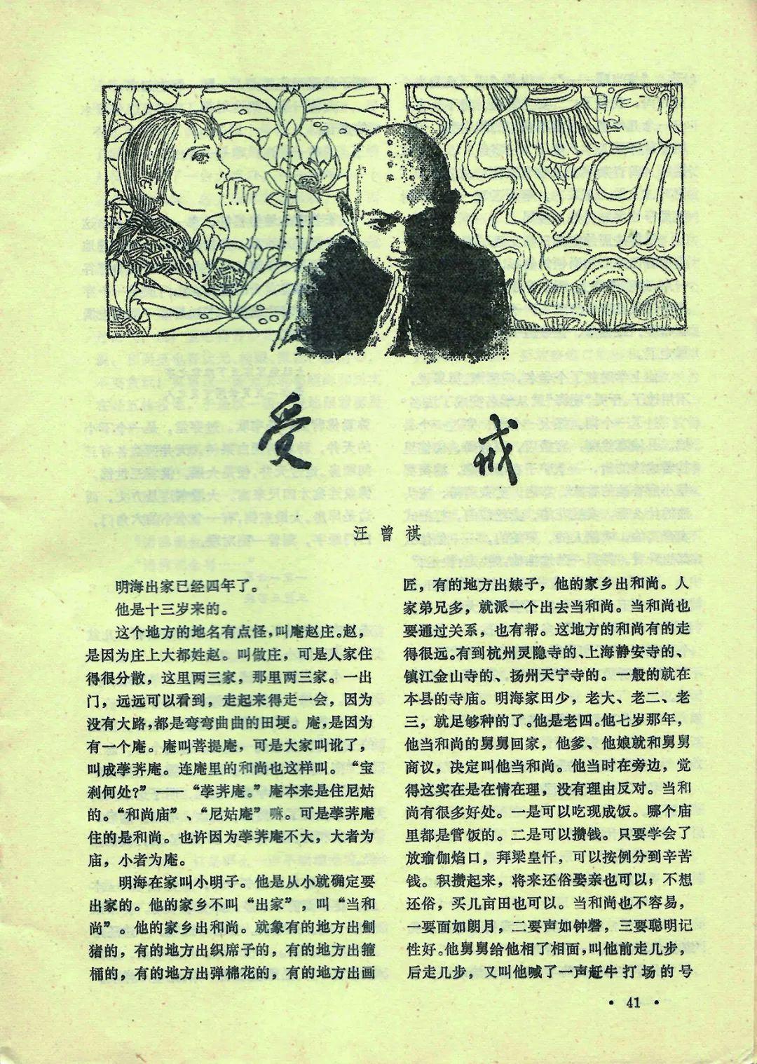 1980年,老友林斤澜将他的短篇小说《异秉》推荐给了文学杂志《雨花》,起初没能获得通过,3个月后发表的《受戒》却引起了讨论。随着《大淖纪事》得了1981年的全国短篇小说奖,上门约稿的编辑才多了起来。