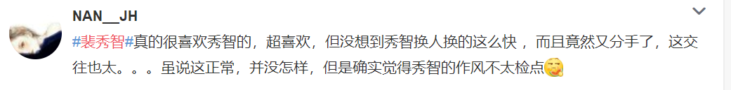 不过对比哪些恋情死死遮住的流量艺人们,裴秀智关于恋情的公开操作一直还是比较公开透明的,给了粉丝足够的信任~因此好感度还是可以的。