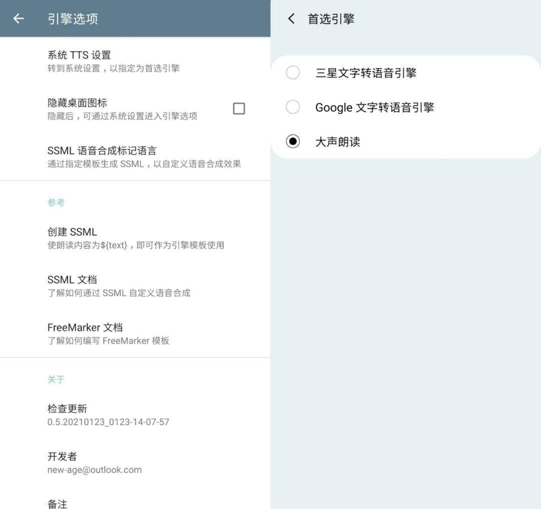打开 App,点击【系统 TTS 设置】,即可更换手机默认语音引擎为微软大声朗读。