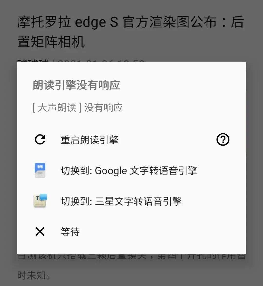 原因在于 Edge 浏览器移动端并不支持中文朗读。