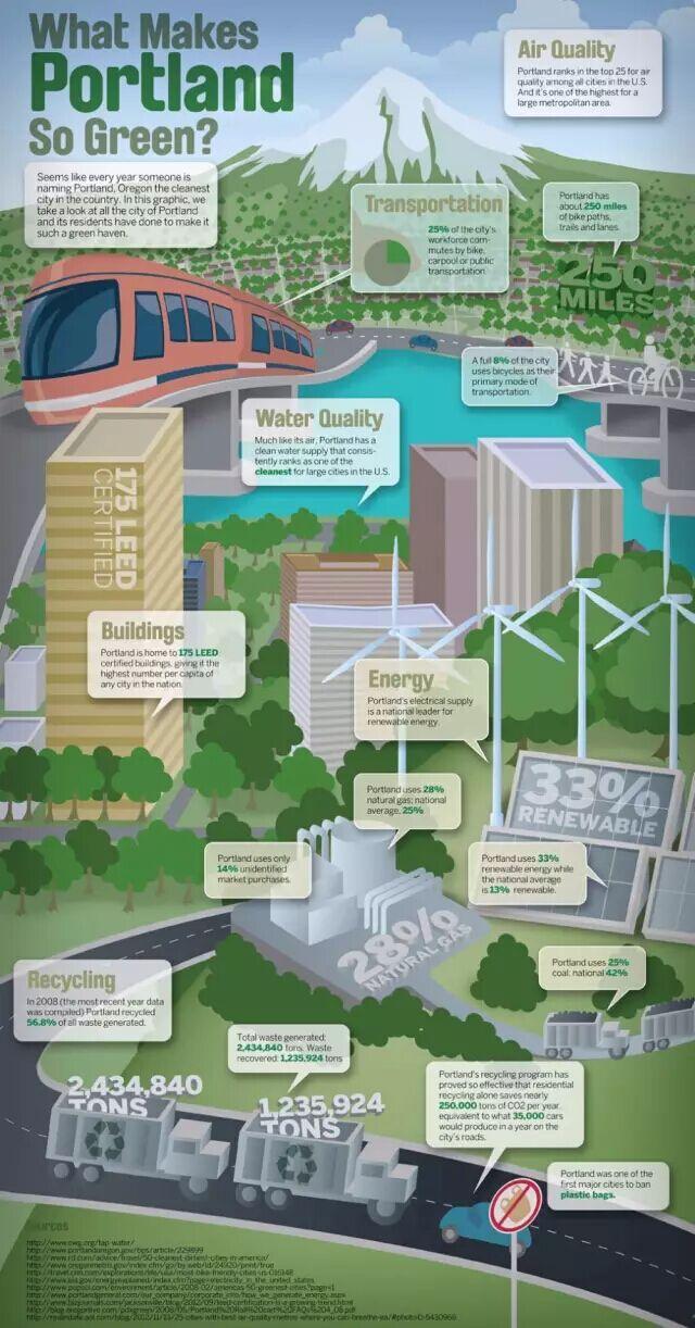 - 波特兰使用可再生能源的比率是33%, 而全美平均只有13% 使用可再生能源。
