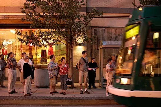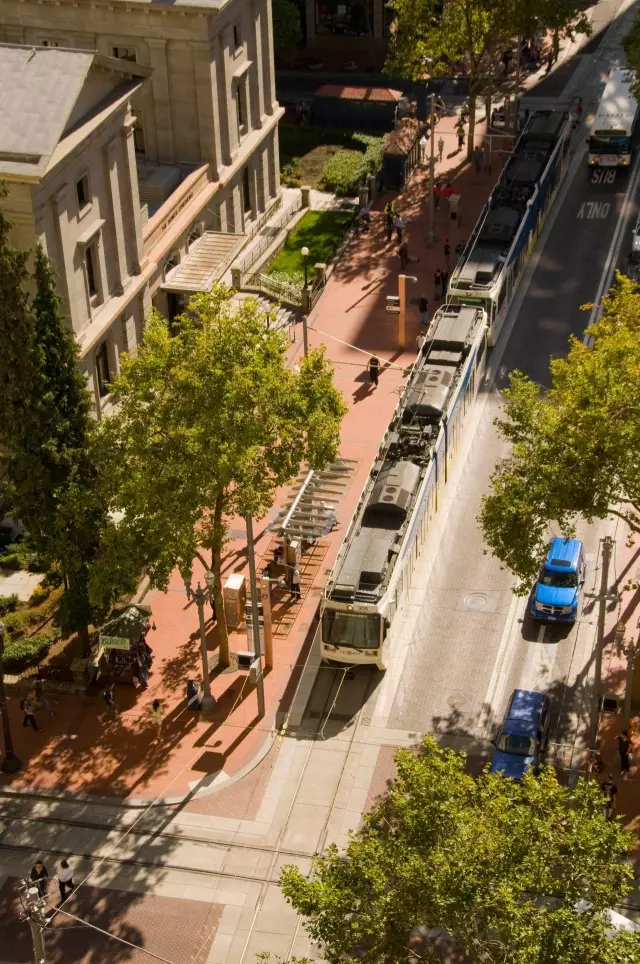 波特兰购物中心是一条城市景观购物大街项目长1.7英里,振兴计划穿越了波特兰市中心6个不同的地区共116个街区,算的上是全国最大的交通项目,计划融合了多种交通方式(人行道、自行车道、机动车道、新型轻轨和大容量公共汽车系统),刺激了邻里发展,是波特兰市重要的公民核心场所。这个振兴计划解决了市中心堵塞的交通问题,吸引投资,重新定义公民空间。有过境游客专用通道,宽阔的人行道,茂密的行道树和高品质的公共设施,很多创举在美国都是第一次出现,因此获奖无数。这里的原始材料没有被浪费掉,花岗岩,砖,铸铁被保存和很好的重新利用,原有600株树木都被保留。项目在各个尺度上都体现了可持续性,对城市核心进行了再度投资,强化城市结构。