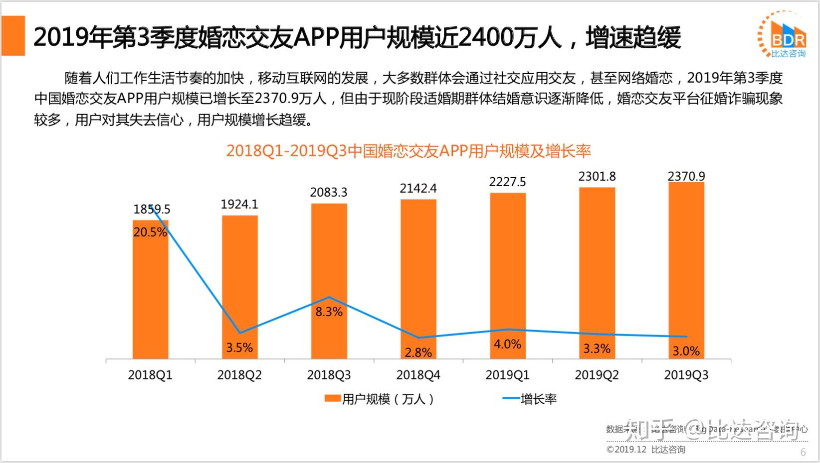 2019年第3季度婚恋交友APP用户规模近2400万人,增速趋缓