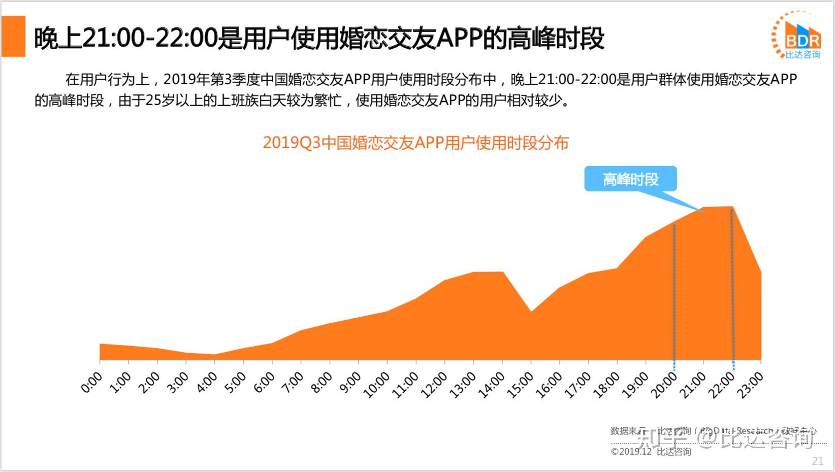 晚上21:00-22:00是用户使用婚恋交友APP的高峰时段