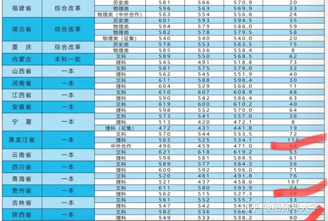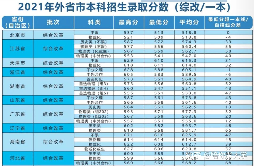 2021年在各省的录取分数如下: