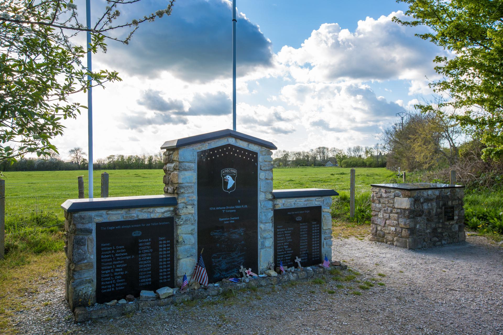 一大片平地绿草茵茵,早已看不出浴血奋战的痕迹。沿路的E连纪念碑上,刻着D-Day当天101师E Company牺牲的所有将士名字,The Eagle will always scream for our fallen Brothers!