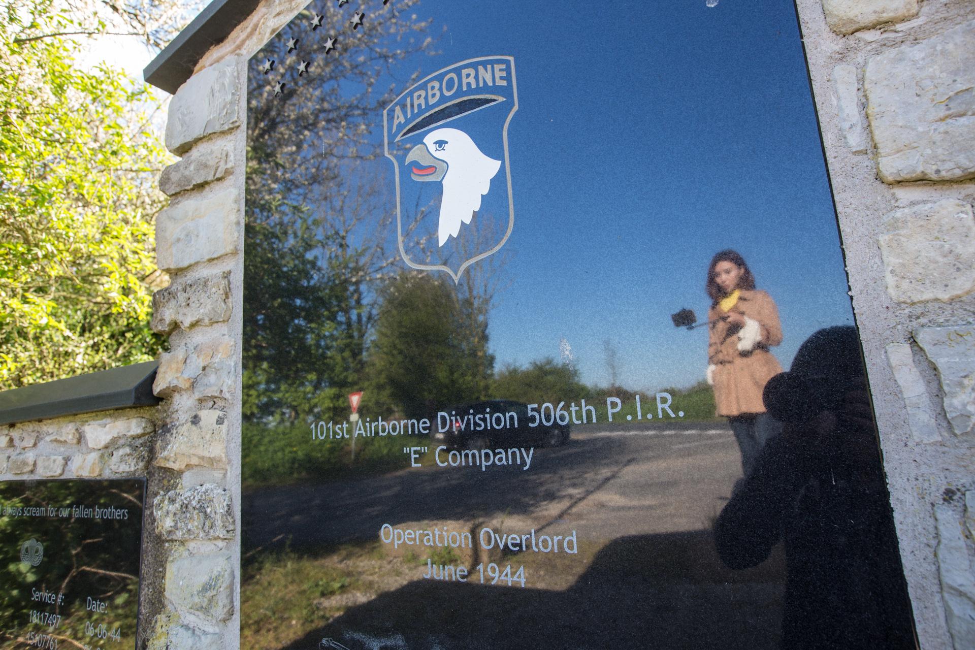 撰写这篇文章的是思怡,也就是照片里的女生——我,在认识橘子之前我是一个战争盲、历史盲,然而自从在他的启发下重新看了《兄弟连》这部剧,看完后我就和他一样,被剧中那些人物和故事深深吸引,睿智勇敢的温斯特少校、内向隐忍的医疗兵尤金还有仗义沉稳的大牛等等等等,从来没有看完一部剧的感觉如此复杂过,那是一种无法描述的沉重,以及对这些曾鲜活于世的灵魂的无上崇敬。于是我们一致决定,在环法之行中一定要专程去一趟诺曼底,看看当年101师战斗过的地方,如今变成了什么样。