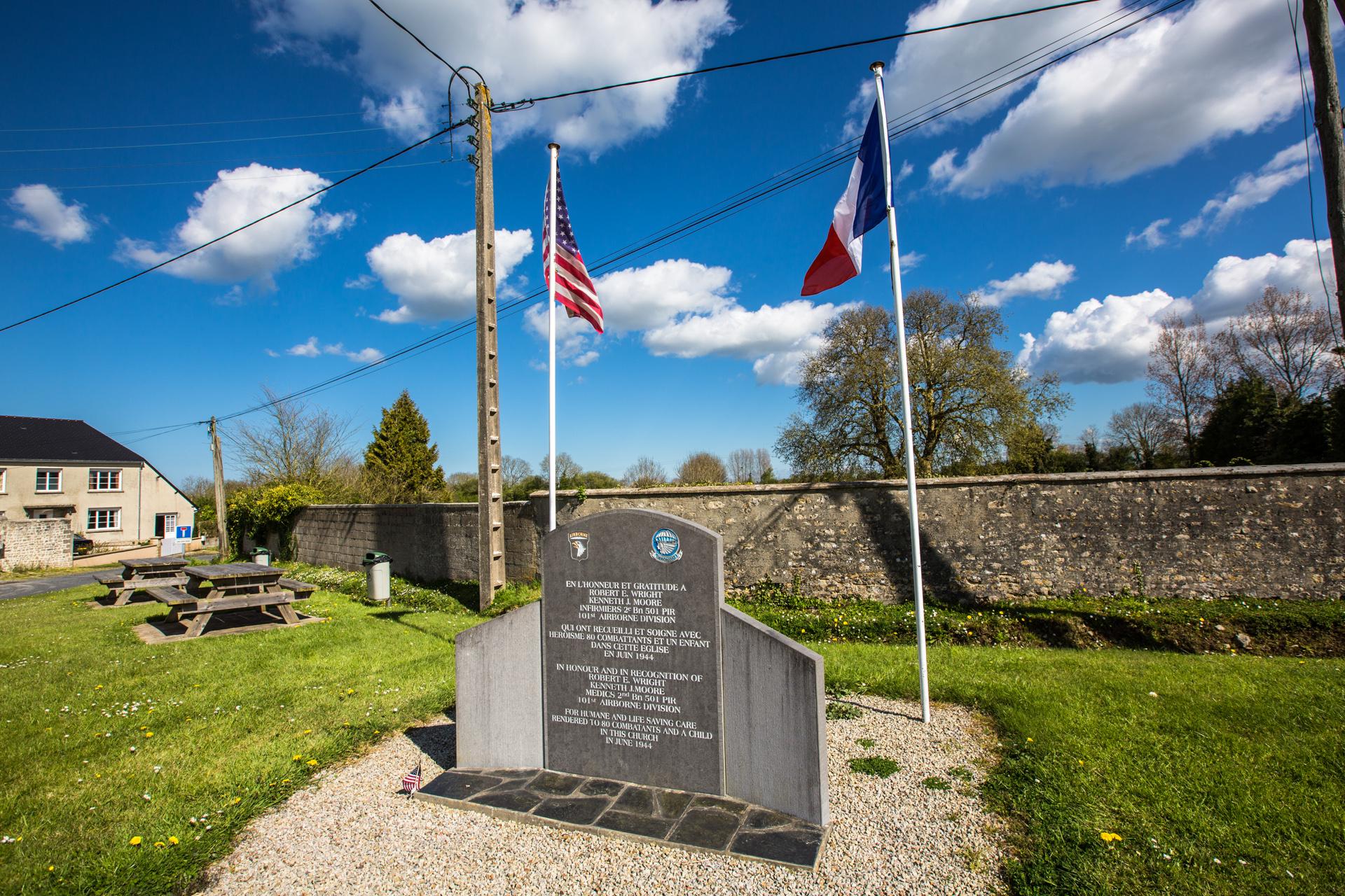 继续沿着D913向前不到5分钟,便可到达Saint Marie Du Mont小镇,这里是101空降师主要空降区域之一。E Company在攻下小镇后便以此为据点整备后继续朝内陆进发,战士们还在小镇中心的教堂前合了影,70多年过去,所有的建筑、背景,竟然依旧一模一样。