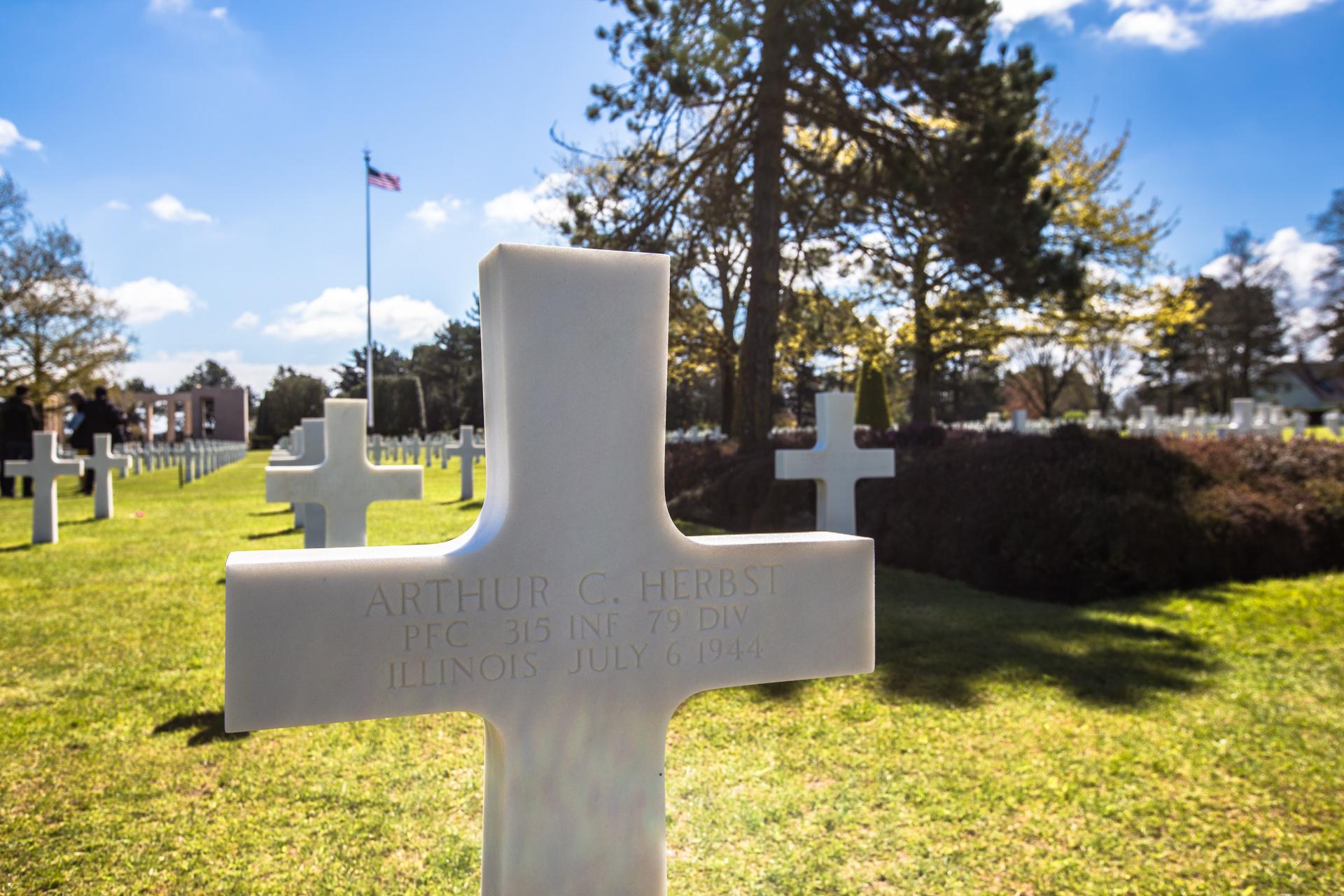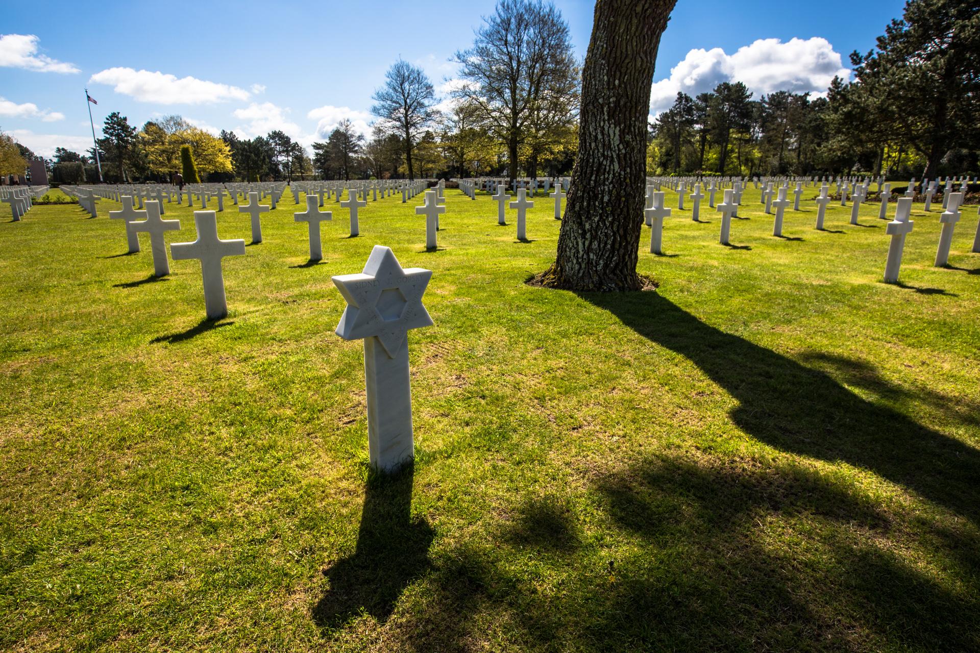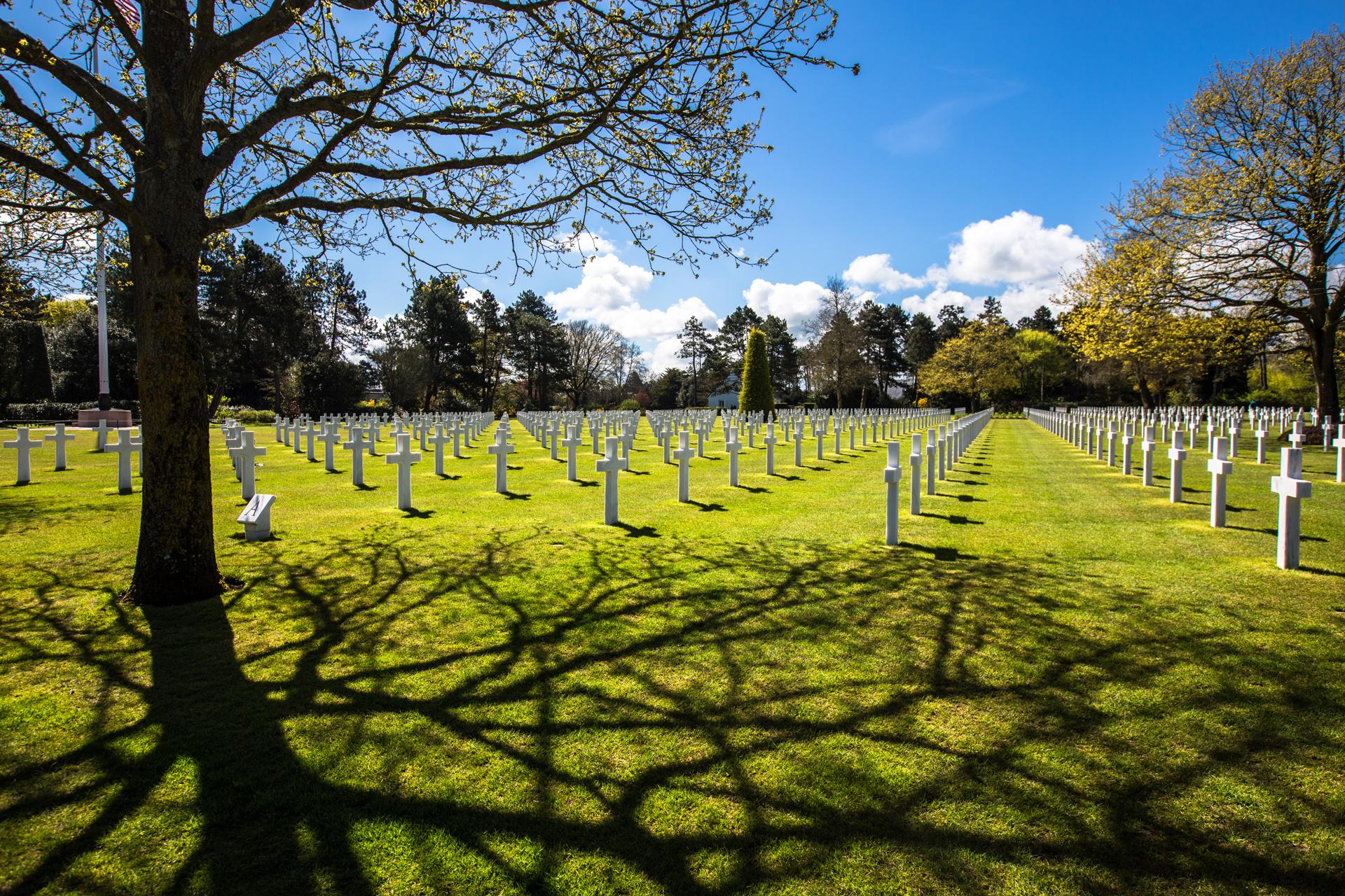 博物馆往西400米左右,便是著名的美军公墓所在地,公墓建于奥马哈海滩高地上,同其他海外墓地一样,美国在此享有特别权利,使之成为被法国包围的美国领土。整片墓地由美国政府提供资金持续维护。随风飘扬的美法国旗也同时寄托了法国人对当年救助的感激之情。