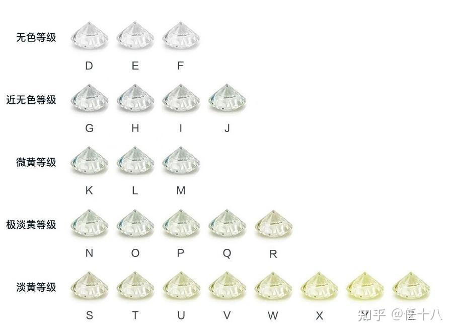 根据美国宝石学院GIA制定的4C标准,钻石的等级分类主要看: ①颜色、②净度、③切工、④克拉重量 。