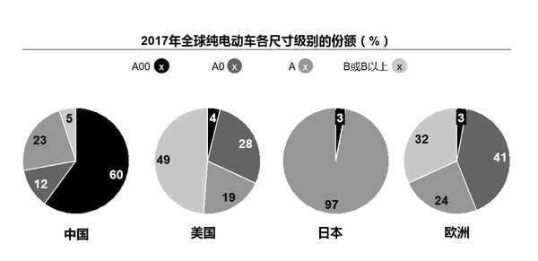 第四,目前全球范围内,除了中国A00纯电车在政策刺激下销量占比较高,其它国际市场的A00都不受待见,包括众所周知的偏爱小型化汽车的日本和欧洲。