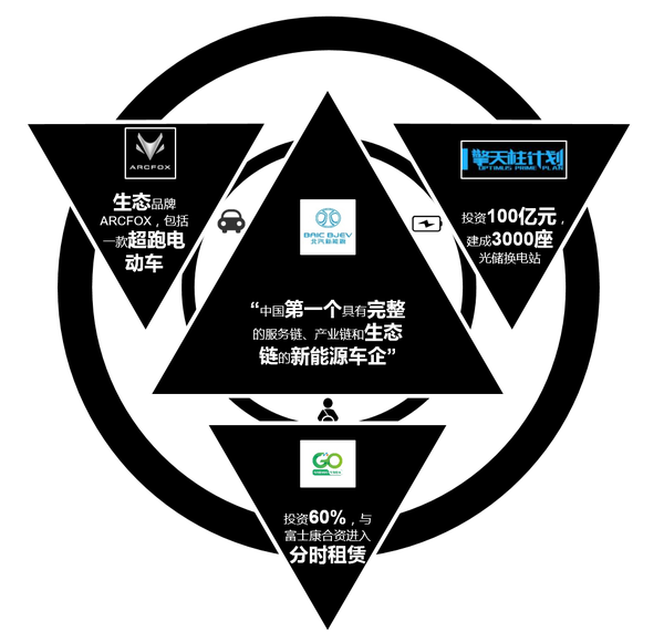 在北汽新能源汽车这条业务线之外,另有三箭齐发。