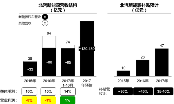 缩水的补贴只有北汽新能源自己拿真金白银来弥补。回归理性的政策环境以后,北汽新能源的利润一定会被打回原形。