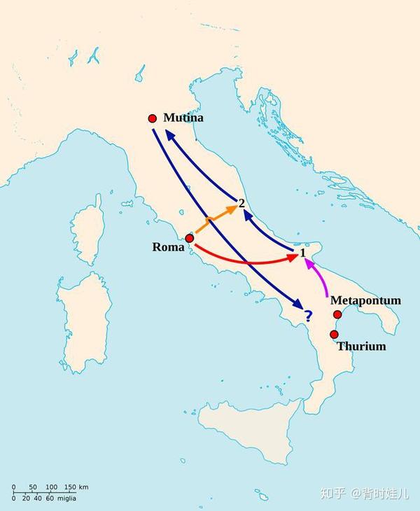 打败了两路罗马大军的进攻后,斯巴达克斯北上翻越阿尔卑斯山,逃离罗马控制区域的路已经没有了任何阻碍。但是,奴隶大军这时却出人意料的调转枪头,一路杀向意大利南部。没有任何史料显示斯巴达克斯作出这个选择的动机是什么,从他们最后想要到西西里岛来看,也许是因为粮食的原因,因为西西里岛是罗马最大的产粮区。人往往会因其所负的责任而作出不得已的选择,如果只是斯巴达克斯一个人,他很有可能直接逃回色雷斯,但是肩负着几万人的生死存亡,斯巴达克斯不得不直面凶猛的罗马军队。