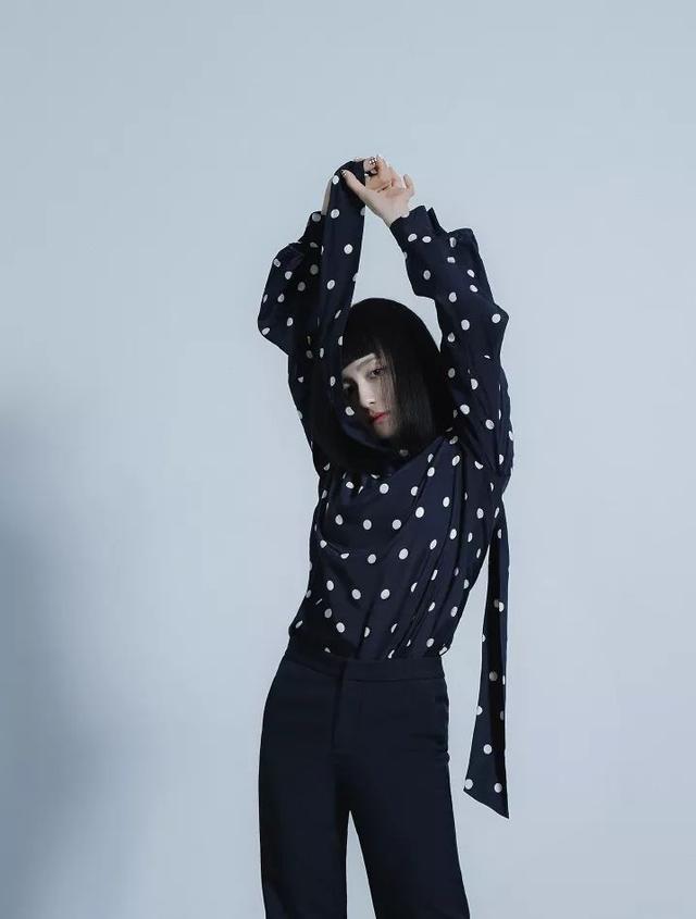 即使是衬衫,也遵循了肩线下移的规律。相对于修身的衬衫,这样穿是不是显得人小巧了许多呢?