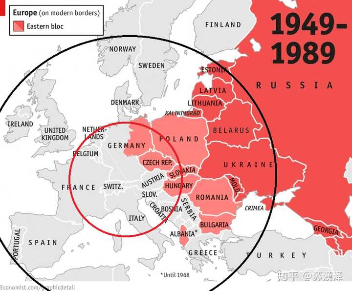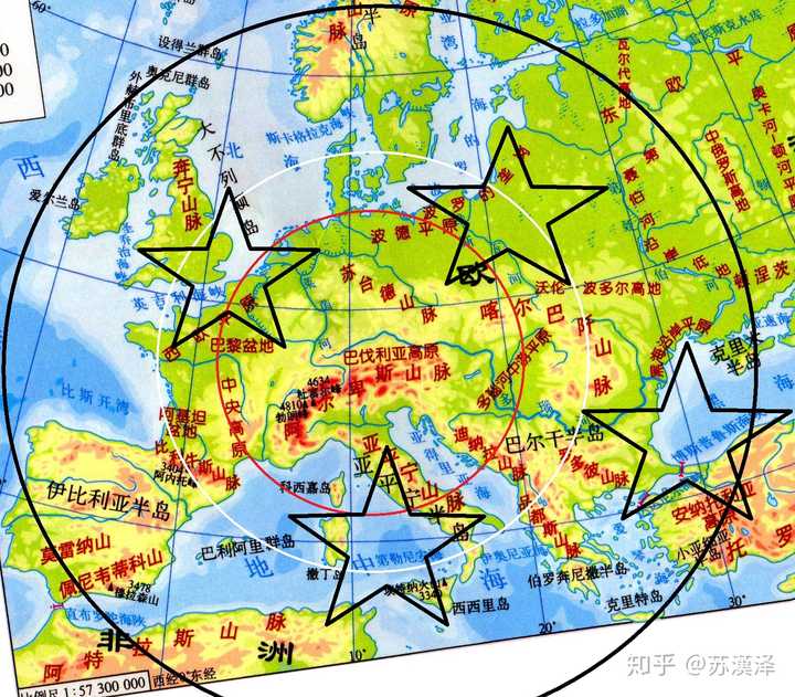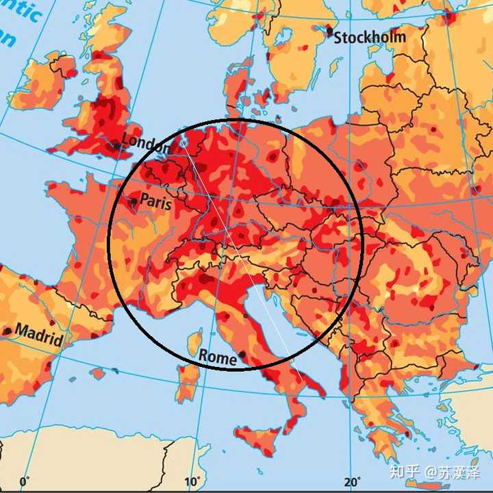 六个欧共体发起国,领土主体都在上图红圈内。是欧洲大陆的主体核心。在此基础上,发展成如今的欧盟。