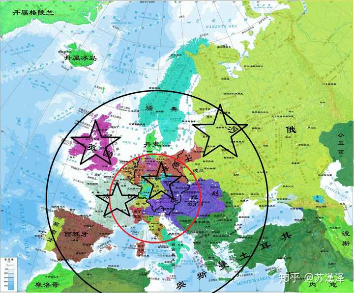 拿破仑的法国与一战的德国,本质上都是对英国主导的殖民地格局的挑战。所以,这个阶段的欧洲,都是英国作为离岸搅局者,将欧洲大陆作为商品市场,殖民地作为原料产地,通过海贸,以小御大,不断维持着一个岛国主导的日不落帝国。
