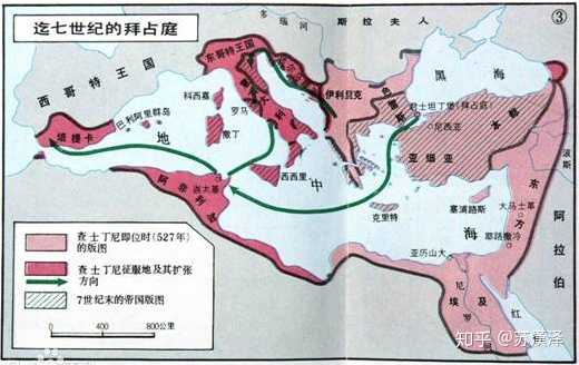这个世纪里,东罗马帝国的查士丁尼大帝,一度攻占了意大利、西班牙、北非的地盘,使得地中海几乎再次成为一个帝国的内湖。