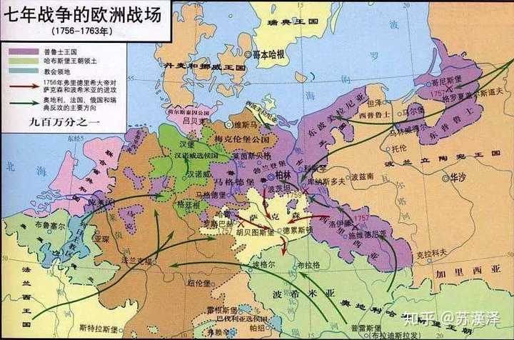 于是,七年战争的本质,变成了普、英为首的新兴资本主义同盟,挑战奥、法为首的封建帝国势力。