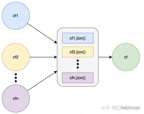 构造了所有需要异步执行的 CompletableFuture 之后,使用 allOf 方法阻塞等待所有的 CompletableFuture 结果,allOf 响应之后可以通过 join 获取各个 CompletableFuture 的响应接口,这里的 join 是会立刻返回的,不会阻塞: