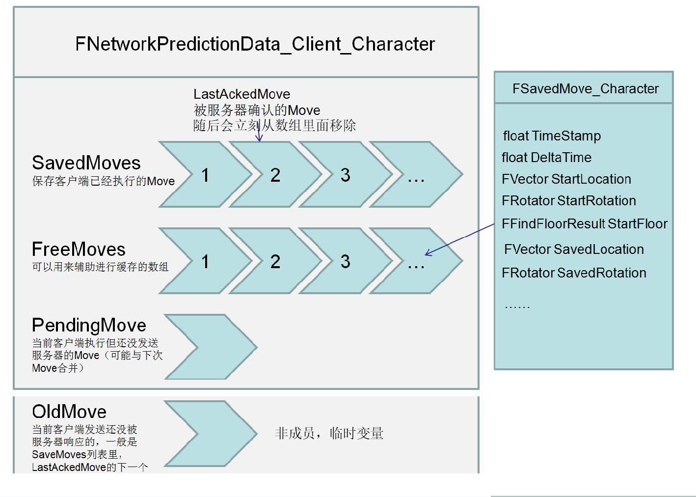 2.GetPredictionData_Client_Character客户端获取预测数据结构体,第一次会主动创建。这里面会保存一段时间内的移动数据以及时间戳,还有各种位置和旋转的偏移用于平滑