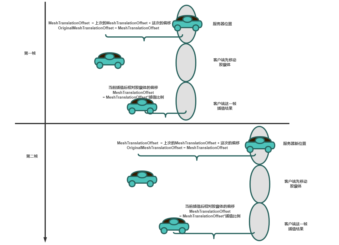 SmoothClientPosition_Interpolate是真正的执行插值的逻辑,而SmoothClientPosition_UpdateVisuals执行的是更新Mesh的逻辑。