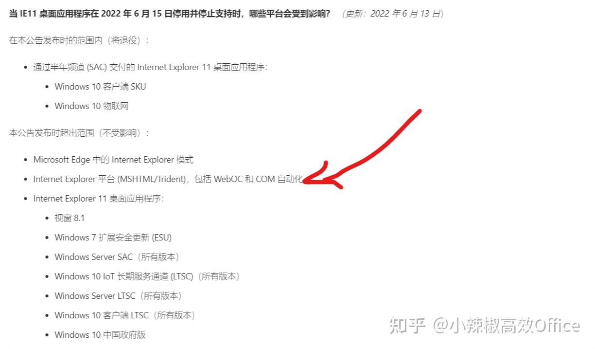 当 IE11 桌面应用程序在 2022 年 6 月 15 日停用并停止支持时,哪些平台会受到影响? (更新:2022 年 6 月 13 日 )