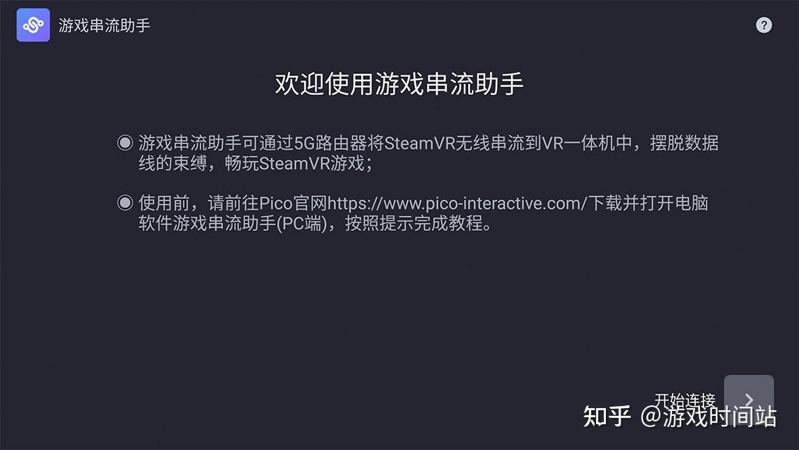 在电脑上打开Pico游戏串流助手(PC端),根据软件的指示进行操作,具体步骤如下: