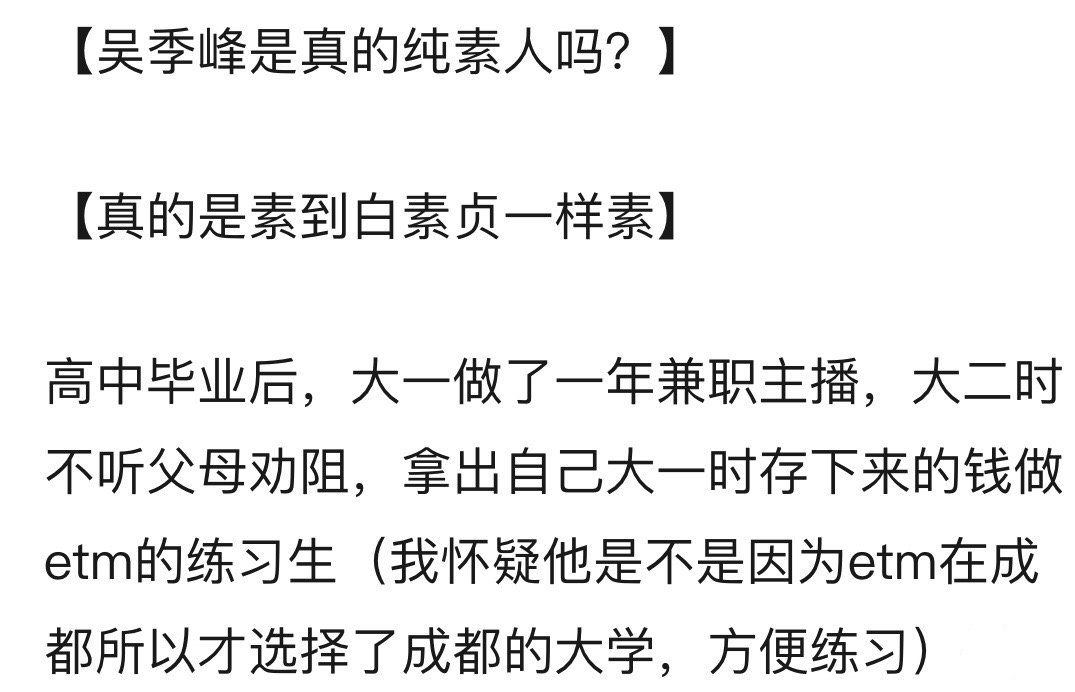 如果粉丝的爆料是真,那吴季峰加入经纪公司ETM活力时代的学费,还是他自己自己做兼职主播攒下来的钱。