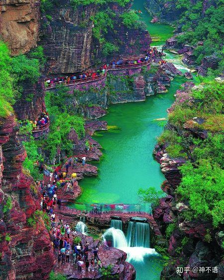 云台山 -以太行山岳水景为特色,以峡谷类地质地貌景观和历史文化为内涵,集科学价值和美学价值于一身,因山势险峻,峰壑之间常年云锁雾绕而闻名。