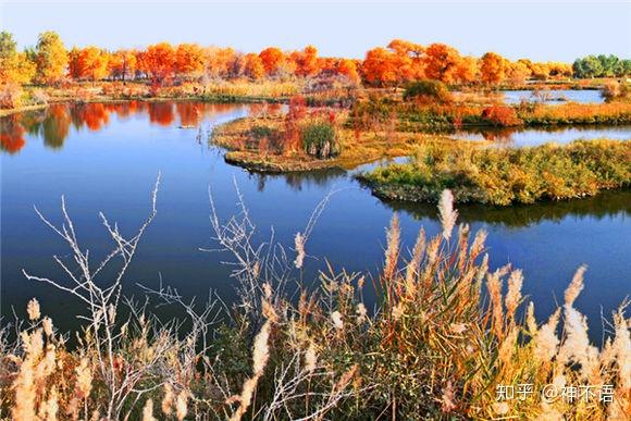 金胡杨 -环境优美的沙漠绿洲,景区以上万亩的天然胡杨林最为著名,又依绿洲中的湖水、树林修建了园林湖景,风光旖旎,是喀什地区最著名的景区之一。