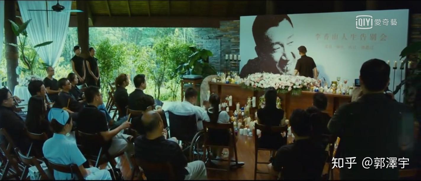 李香山想要体面的离开,作为兄弟的秦奋,给他办了一场活着的追悼会,出席的嘉宾和之前参加离婚婚礼时比起来,少了些商业上的朋友,更多的是公司的员工,老朋友,旧爱,甚至照顾他的护士。 ”爱过,颓过,活过,熟悉过“ 这九个字道出了李香山这一生的伟大和平凡,爱过自己曾经的妻子,没少瞎折腾过事业,有幸来这一生,就此和大家说再见了。