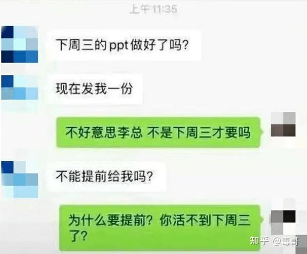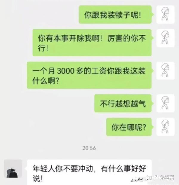 假如一个实习生,用梗图里面的那种极度冲的语气怼了领导,比如“你活不到下周三吗”、“老板是没有祖坟吗”、“怎么你是孤儿,不用回家吃饭呀”等等,你猜老板是会好声好气劝和呢,还是直接让TA卷铺盖走人呢?