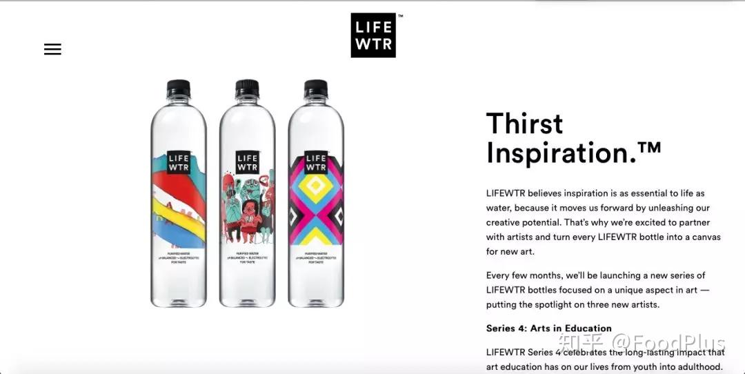 百事公司在最近一两年推出了若干个创新型的饮料品牌,比如2016年推出的高端饮用水品牌LIFEWTR,2017年推出的气泡水品牌Bubly,LIFEWTR通过独特的包装设计以及与艺术的结合获得了不错的增长,Bubly也通过色彩缤纷的包装设计获得了市场的认可,还有在今年推出的胶囊饮料Drinkfinity。